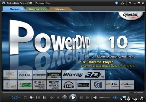 CyberLink PowerDVD 10 - считается одним из самых знаменитых и качественных программных DVD-плееров. К его основным преимуществам можно отнести высокое качество изображения, очень удобный интерфейс со скинами и отличную настраиваемость. Кроме просмотра фильмов с компакт-дисков (DVD и Video CD), PowerDVD позволяет проигрывать файлы форматов, поддерживаемых Windows MediaPlayer, а также MPEG1 и MPEG2. В программе есть все присущие аппаратному DVD-плееру цифровые функции: масштабирование изображения, непрерывное проигрывание выбранного эпизода, установка маркеров для быстрого нахождения нужной сцены, ускоренный просмотр и т.п. Есть даже такая возможность, как одновременный показ субтитров на двух языках.